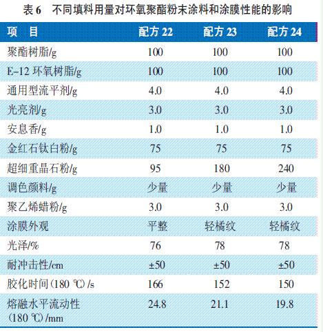 表6 不同顏料和填料組合對(duì)環(huán)氧聚酯粉末涂料的影響