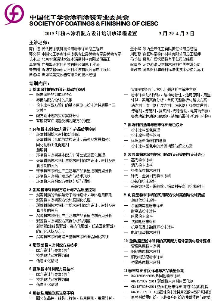 關(guān)于舉辦2015粉末涂料配方設(shè)計(jì)培訓(xùn)班的通知