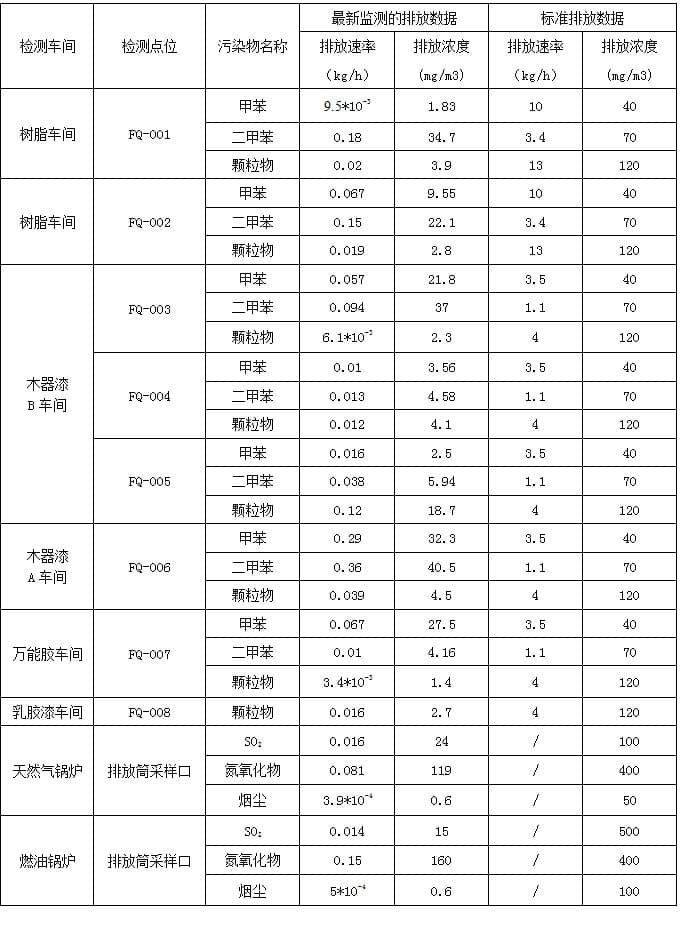(1)廢氣排放的主要污染物包括:甲苯、二甲苯、顆粒物、SO2、氮氧化物。