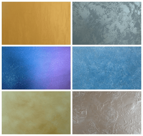 (從左到右,從上到下分別為傾城之虹、流金幻彩、夢幻威尼斯、羅馬經典、流光溢彩和巖紋藝術漆)