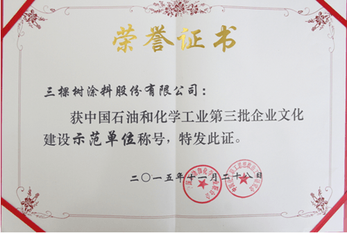 據(jù)悉,三棵樹曾在2012年獲得該殊榮,此番二度獲獎體現(xiàn)了企業(yè)的深厚底蘊。評審專家通過對三棵樹企業(yè)文化的訪問考評,一致認為三棵樹是化工行業(yè)內(nèi)杰出的文化建設(shè)典范,并主動提出在業(yè)內(nèi)推廣三棵樹企業(yè)文化。