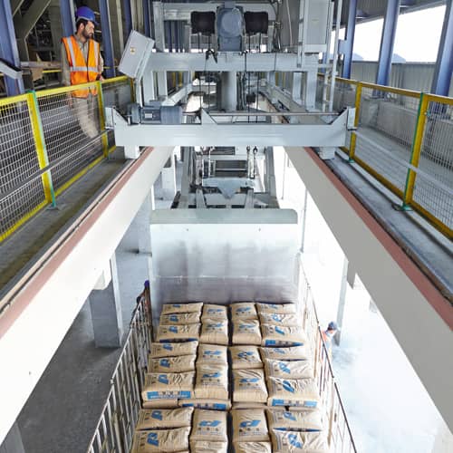 HAVER SpeedRoad將來自包裝機(jī)輸送帶上的袋子組成一層樣式并把它們裝卸到卡車上。因此,可以確保卡車上每一層跺型都很完美。一旦卡車裝載完畢,裝車機(jī)即刻切換到等待模式,直到下一輛卡車到達(dá)。
