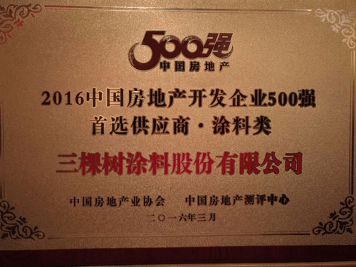 中國房地產(chǎn)500強測評成果發(fā)布會被譽為中國房地產(chǎn)全行業(yè)百家企業(yè)“奧斯卡”盛典,而自2011年開始,三棵樹涂料連續(xù)六年榮獲500強開發(fā)商首選品牌,這一成就意義非凡,不但充分印證了社會各界對三棵樹品質(zhì)的認可,同時對促進整個房地產(chǎn)產(chǎn)業(yè)鏈的整體發(fā)展,形成誠信經(jīng)營、有序發(fā)展的市場競爭具有非常重要的意義。