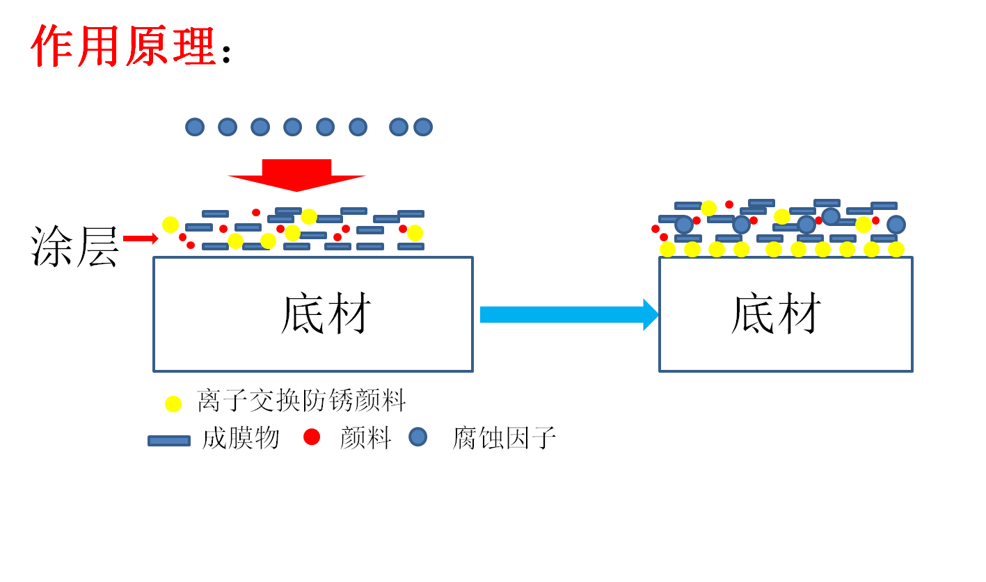 立鈦粉是一種改性離子交換型硅膠防銹顏料是利用腐蝕性電解質(zhì)進(jìn)入涂膜時(shí),即與該防銹顏料接觸,顏料就將這種腐蝕性離子截獲在二氧化硅表面上,并釋放出相應(yīng)的鈣離子轉(zhuǎn)移到金屬底材上,當(dāng)此過程持續(xù)進(jìn)行時(shí),則鈣離子層就堆積在金屬與涂層的界面上,從而起著阻隔作用而保護(hù)了底材,又增強(qiáng)了涂層的附著力,使涂料的防腐性能大大增強(qiáng)。