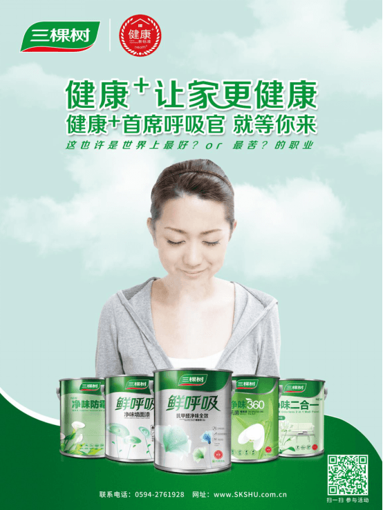 據了解,因為用戶對涂料健康的評判依據之一是味道。三棵樹就以此為突破口,開發更為凈味、更為健康的產品。也是從那開始三棵樹下定決心對標國際各大健康標準,以超越為目標,重新樹立全球涂料行業健康新標準。在三棵樹6000平米的國家級技術中心里,科技創新成為企業蓬勃發展的源動力,每天有數百位專業科研人員在為涂料健康工作著。三棵樹強大的研發創新支持體系,經過多輪技術攻關,終于成功實現了從健康到“健康+”的匠心飛躍。三棵樹制定的行業健康+五項新標準——VOC為國標含量的1/12,游離甲醛達到食品級標準,苯系物未檢測出,優于歐美標準的11類重金屬限量標準,制定了行業內還沒有的氣味判定標準……正引領著健康涂料的新趨勢。再加上恰逢三棵樹成功上市,健康+首席呼吸官的招聘活動想必將在社會上刮起一陣健康+,健康家的清新旋風。