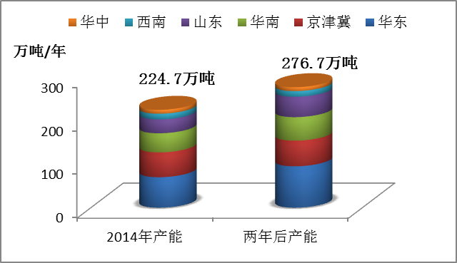 對于預(yù)測丙烯酸乳液的需求增速,我們主要來看一下占其下游需求總量近70%的建筑涂料的未來發(fā)展,至2020年我國城鎮(zhèn)建筑涂料的需求總量預(yù)計能達到724.71萬噸,進而得出對丙烯酸乳液的需求量在131.4萬噸,所以即使加上其他下游的總需求量也不及我國目前的總產(chǎn)能224.7萬噸,所以未來丙烯酸乳液的需求增速較供應(yīng)增速明顯落后。