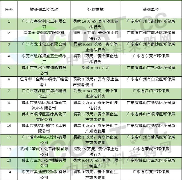 廣東省違規(guī)處罰企業(yè)名單(涂料、原材料部分)